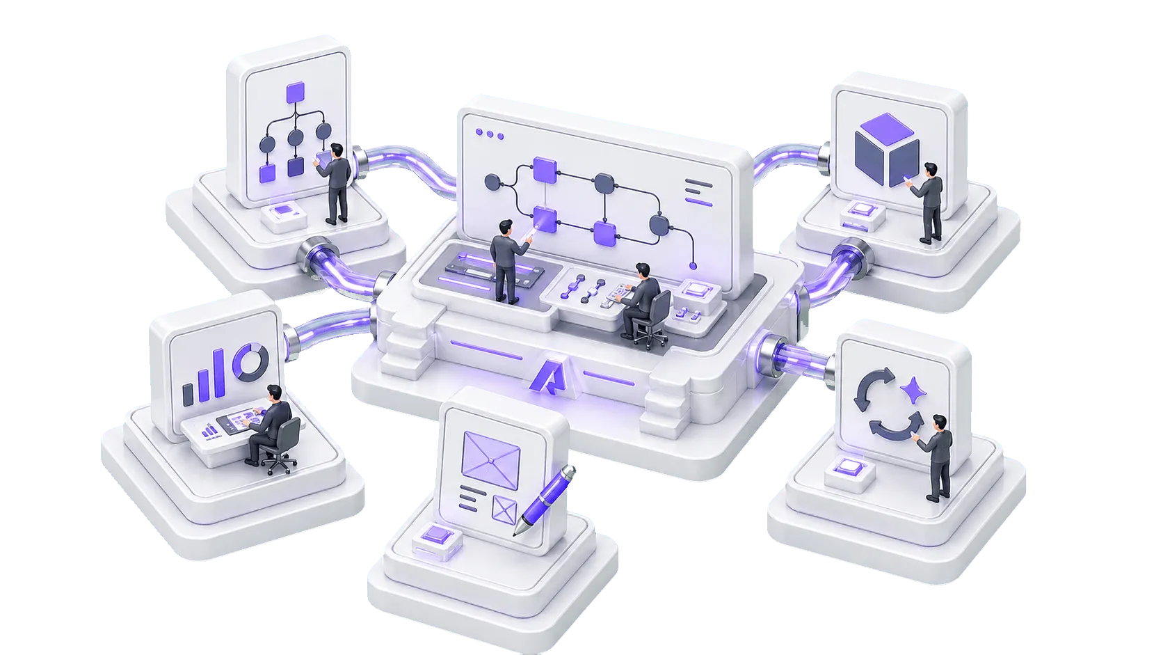Custom software for approvals, scheduling, dispatch, inventory, reporting, reviews, compliance, and the handoffs in between.